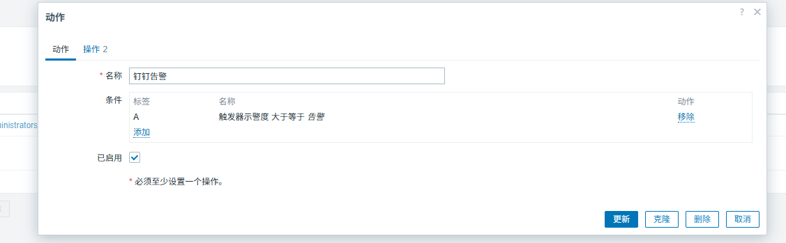 - 条件:触发器警示度大于等于告警