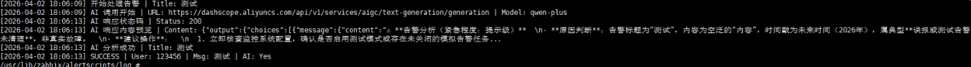 chmod +x /usr/lib/zabbix/alertscripts/dingding_ai.py