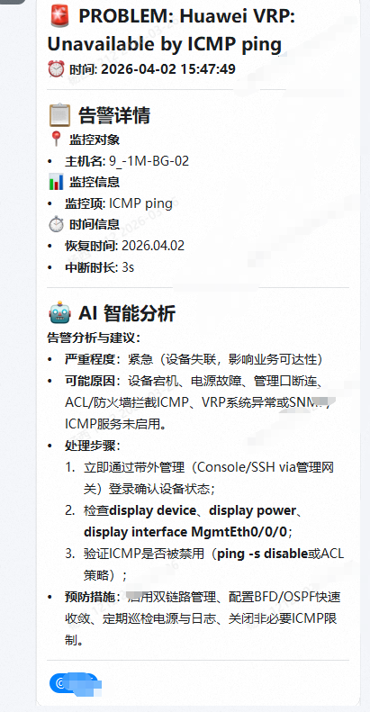 在企业级运维中,告警风暴已经成了常态。Zabbix 报警不断,消息刷屏,但往往信息不全、上下文缺失,一线运维人员只能“凭感觉”响应。